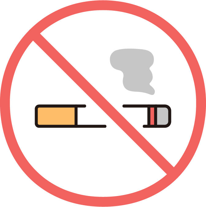 病院敷地内は禁煙となっています。 電子タバコを含むたばこの喫煙はご遠慮ください。 |