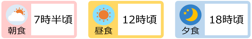 入院中の食事時間は次の通りです。