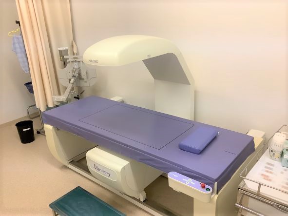 当院の骨密度検査は、最新式の検査法(DEXA法)です。全身型骨密度測定器(米国ホロジック社Discovery)を導入しており腰椎・大腿骨等の骨密度測定が10分~20分程度の測定時間で正確なデータを得ることができます。痛みも無く骨粗鬆症の診断、治療効果の判定が正確に可能です。 |
