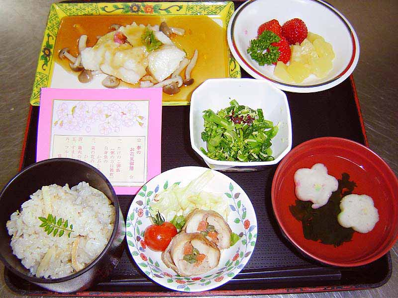 入院中でも、少しでもおいしい食事を楽しんでいただけるように、病状に合わせ、管理栄養士がひとりひとりの栄養バランスを考え、適時適温にてお食事をご提供しています。 |